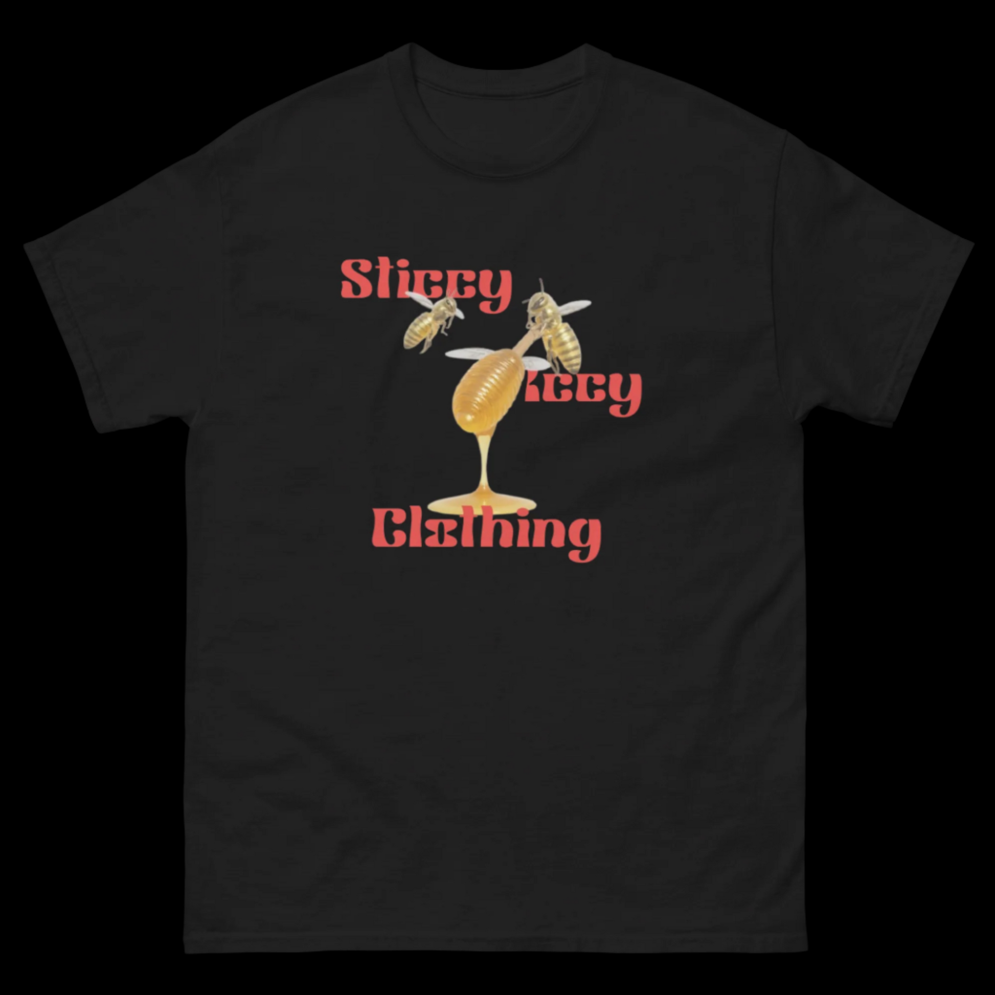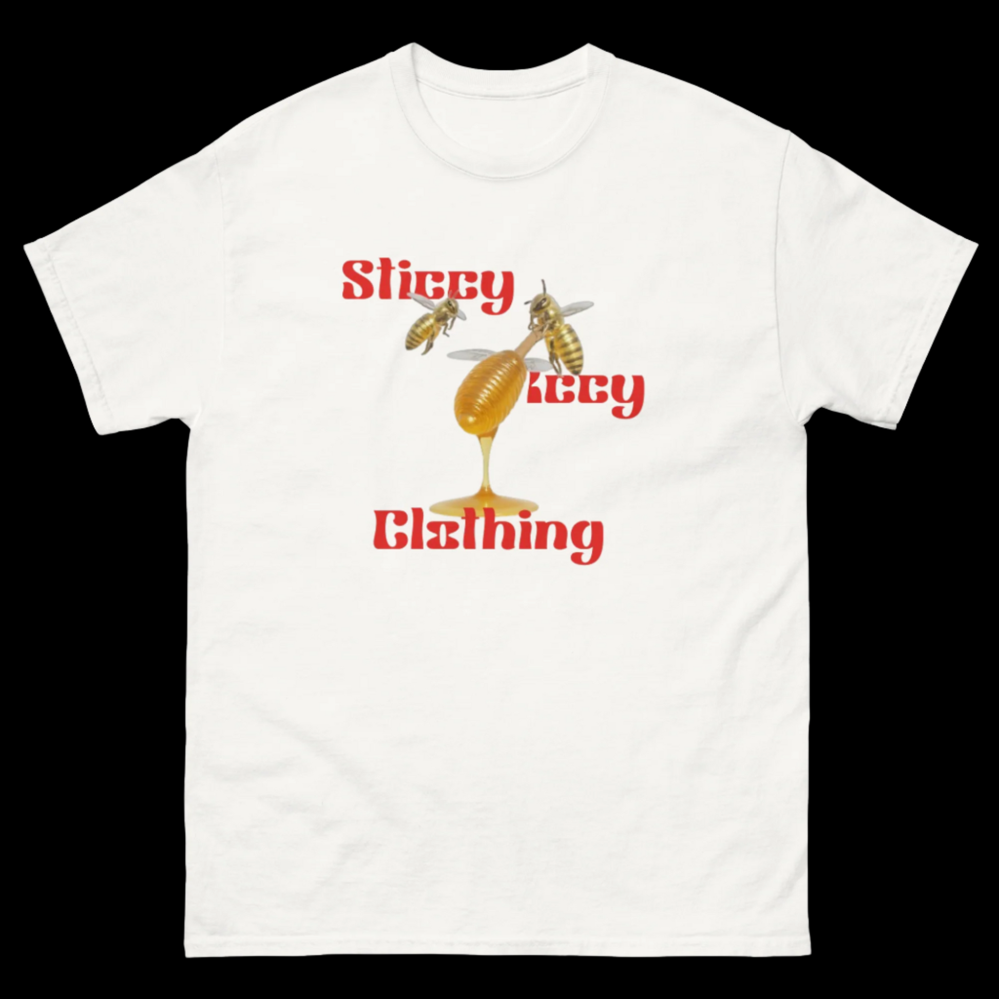The Save the Bees Tee features buzzing cartoon bees, a dripping honeycomb, and a spoon full of golden goo — all wrapped in Sticcy attitude. It’s sweet, bold, and sends a message while serving a look. Rock it for the planet, the drip, and the culture.