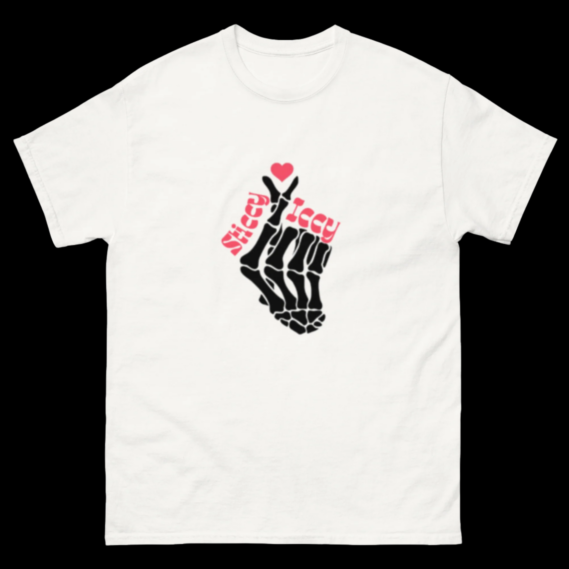 The Skeleton Love Tee flashes a bony hand throwing the iconic finger-heart—proof that even the coldest drip can show some heat. Clean lines, bold contrast, and that signature Sticcy attitude make this piece an instant statement, whether you’re posted at a show or chilling with the crew.Â
